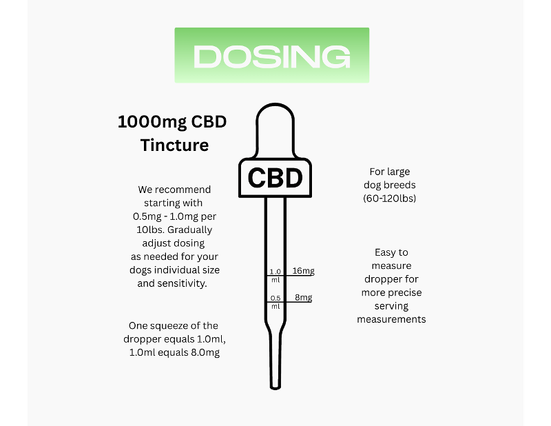 Shake well before use. Begin with a small serving (0.5mg-1.0mg per 10lbs). Each 1ml dropper contains 16mg of CBD. Gradually adjust dosing as needed for your dog's size and response. Many pet owners prefer giving the tincture with a small amount of food containing healthy fats, as cannabinoids are more easily absorbed when paired with fat. Please refer to the dosing chart for further explanation. One serving equals 1ml, there are 60 servings per bottle. For dogs only.